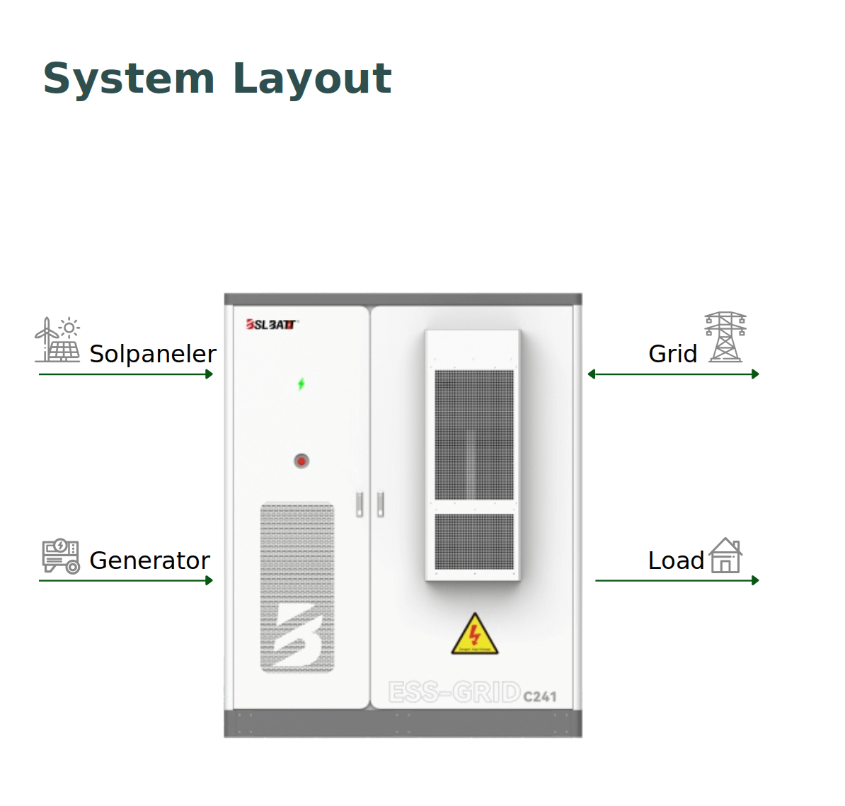 Forside Shop HV ESS - Batterilager højspænding ESS-GRID C241 – 125kW PCS / 241kWh Batterilager