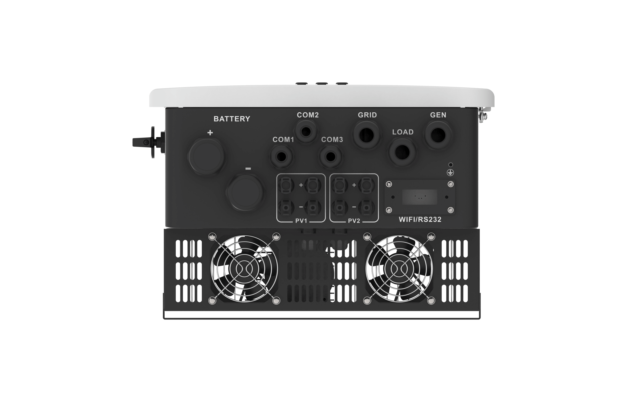 Derudover er den forsynet med smart-load port, som bl.a kan forsyne ikke essentielle el-forbrugere, og sikrer UPS / OFF-grid funktion.