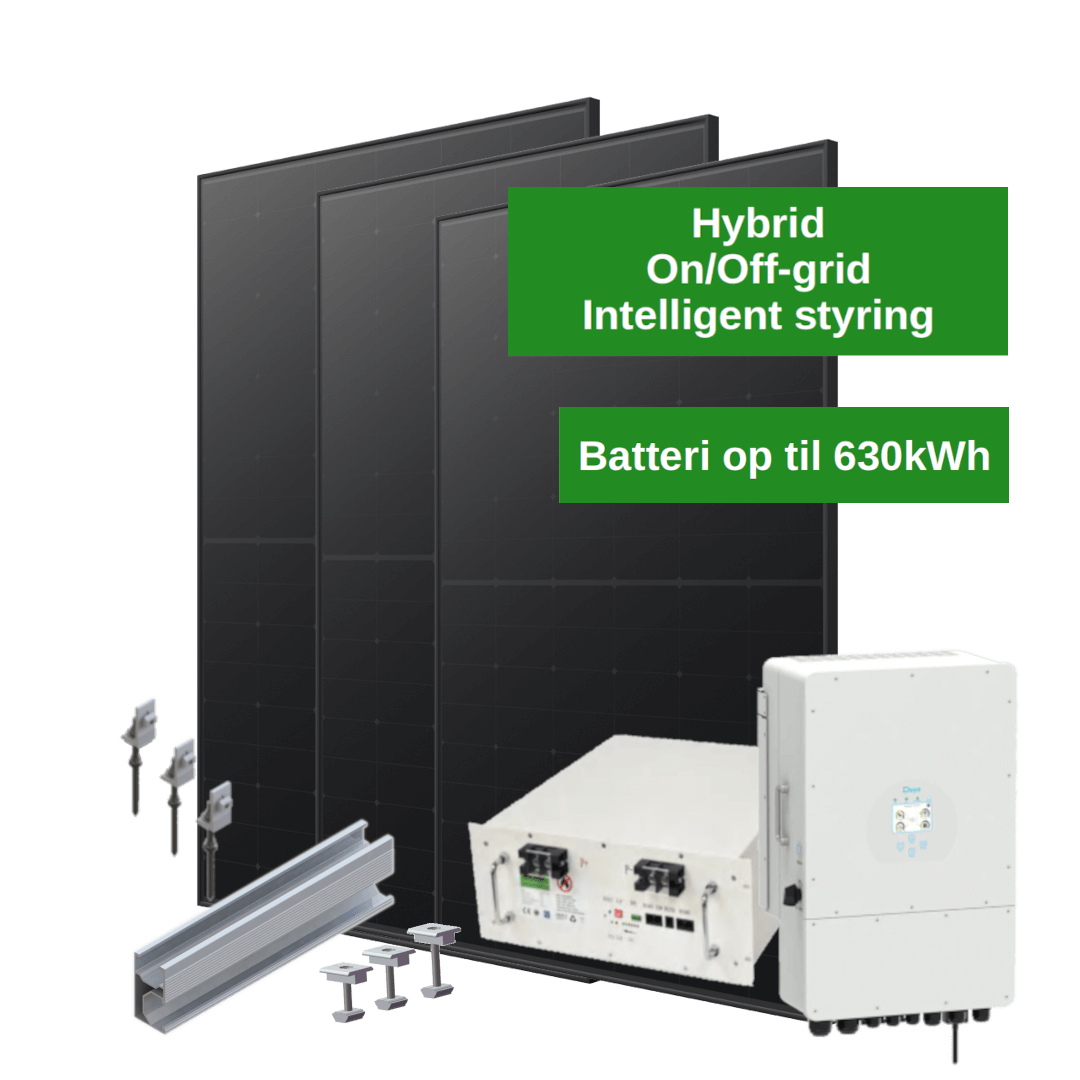 8,1 KW Hybrid Solcelleanlæg med 10.24 kWh LiFePo4 Batteri – sort til eternit-, tagpap- eller ståltag